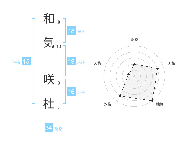 和気 咲杜さんの総格は34画の2点!