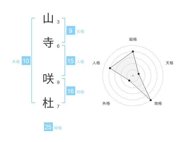 山寺 咲杜さんを姓名の画数から五運を鑑定