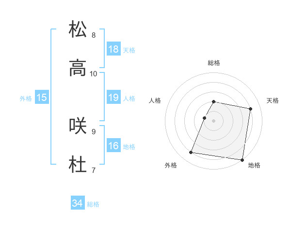 松高 咲杜さんの総格は34画の2点!