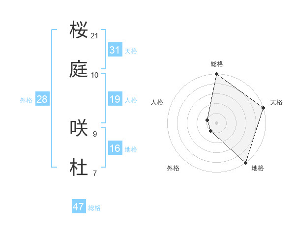 桜庭 咲杜さんの総格は47画の5点!