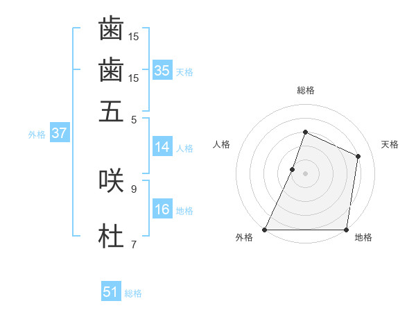歯歯五 咲杜さんを姓名の画数から五運を鑑定