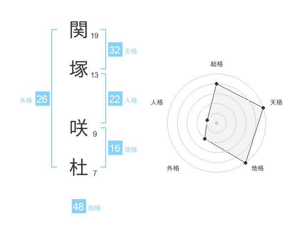 関塚 咲杜さんの総格は48画の4点!