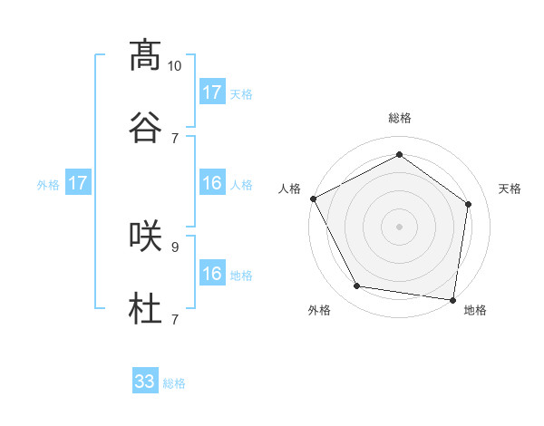 髙谷 咲杜さんを姓名の画数から五運を鑑定