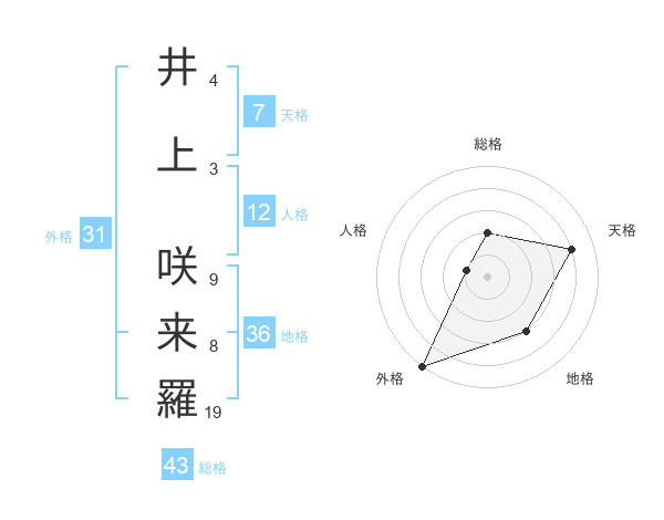 井上 咲来羅さんを姓名の画数から五運を鑑定