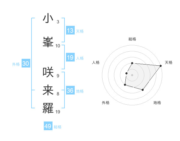 小峯 咲来羅さんを姓名の画数から五運を鑑定