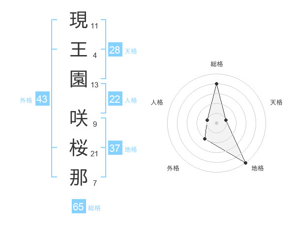 現王園 咲桜那さんを姓名の画数から五運を鑑定
