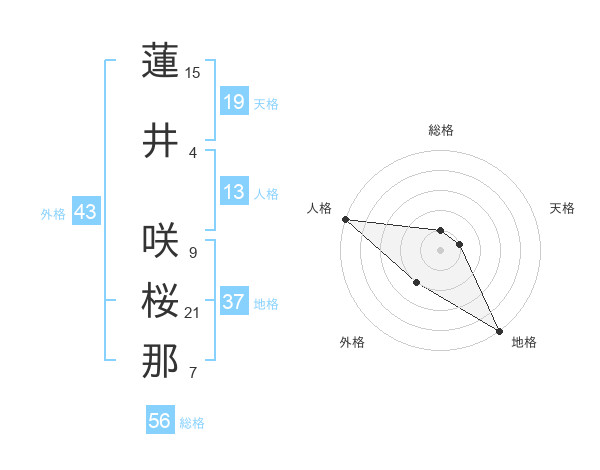蓮井 咲桜那さんを姓名の画数から五運を鑑定