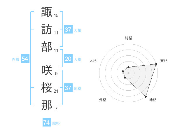 諏訪部 咲桜那さんの地格は37画の5点!