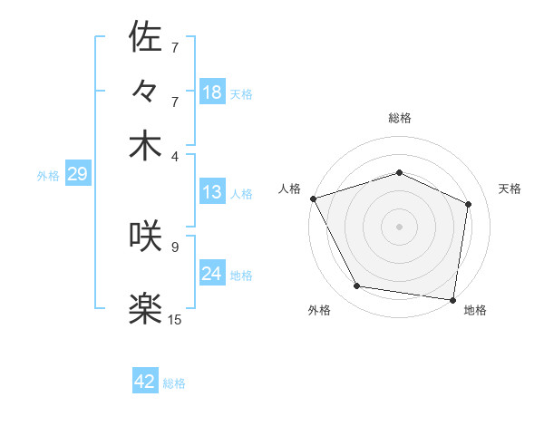 佐々木 咲楽さんを姓名の画数から五運を鑑定