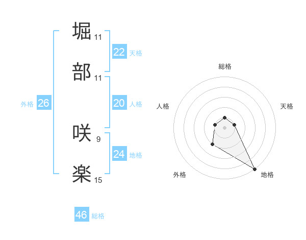 堀部 咲楽さんを姓名の画数から五運を鑑定