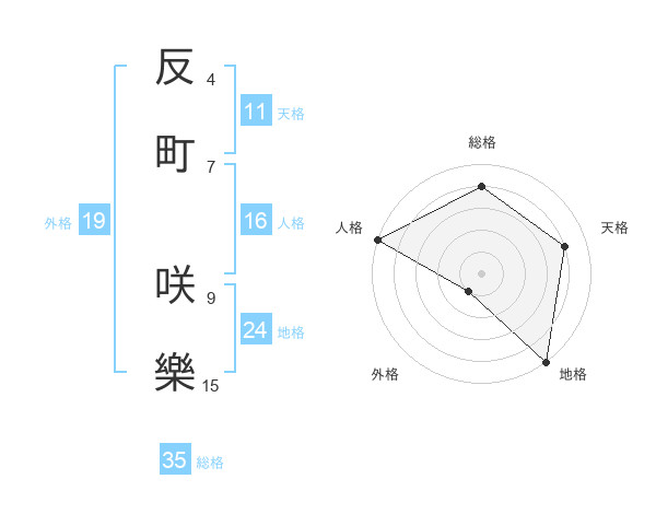 反町 咲樂さんを姓名の画数から五運を鑑定