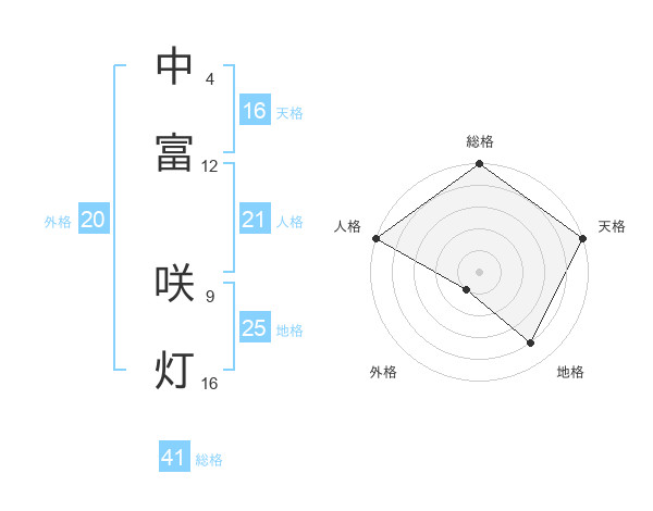 中富 咲灯さんの天格は16画の5点!