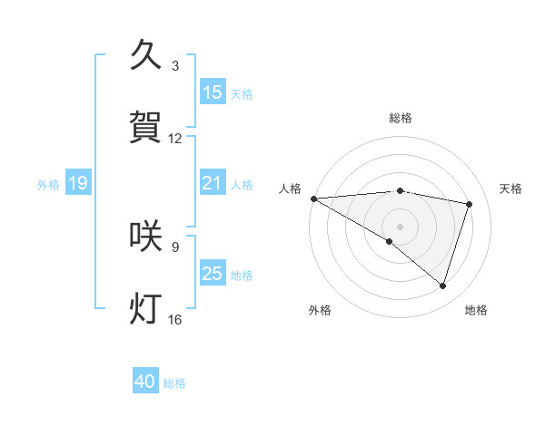 久賀 咲灯さんを姓名の画数から五運を鑑定