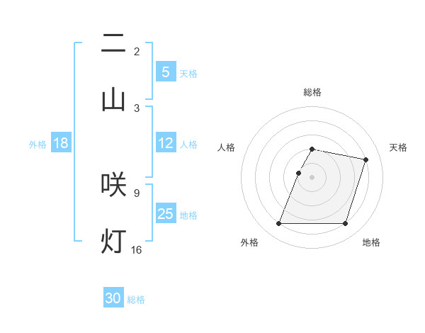 二山 咲灯さんを姓名の画数から五運を鑑定
