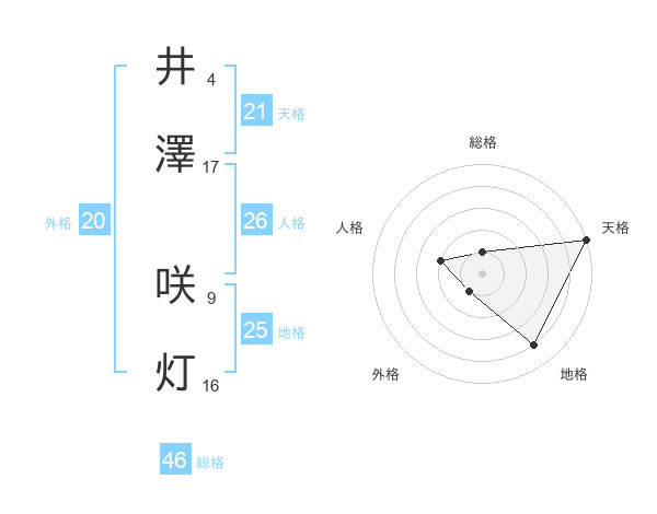 井澤 咲灯さんの天格は21画の5点!