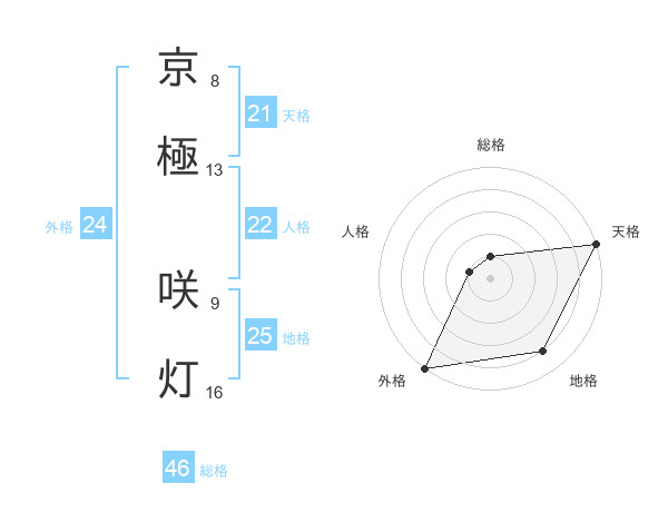京極 咲灯さんを姓名の画数から五運を鑑定