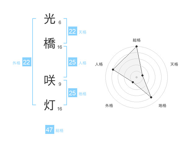 光橋 咲灯さんの総格は47画の5点!