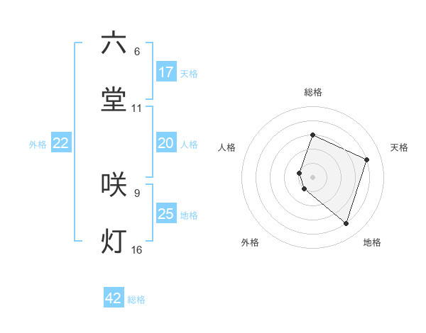 六堂 咲灯さんの外格は22画の1点!