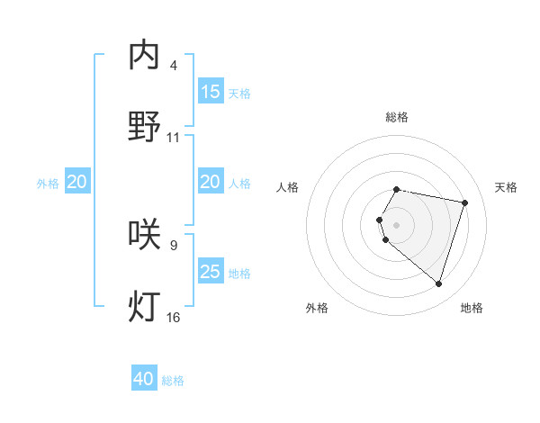 内野 咲灯さんを姓名の画数から五運を鑑定