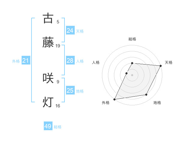 古藤 咲灯さんの天格は24画の5点!