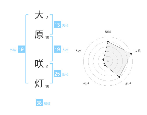 大原 咲灯さんを姓名の画数から五運を鑑定