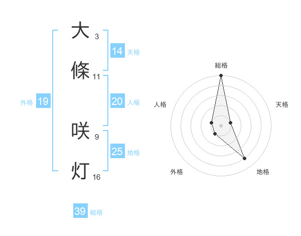 大條 咲灯さんの総格は39画の5点!