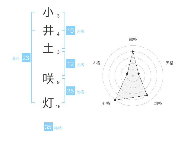 小井土 咲灯さんの総格は35画の4点!
