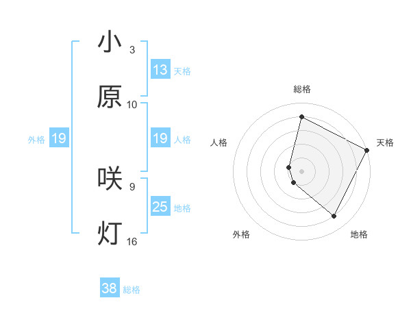 小原 咲灯さんを姓名の画数から五運を鑑定