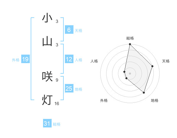 小山 咲灯さんを姓名の画数から五運を鑑定