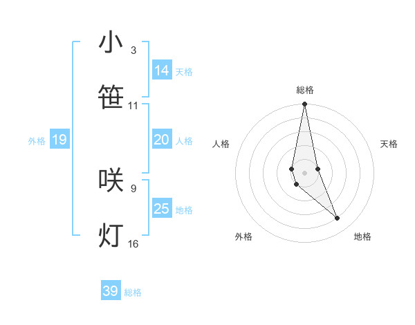 小笹 咲灯さんの総格は39画の5点!