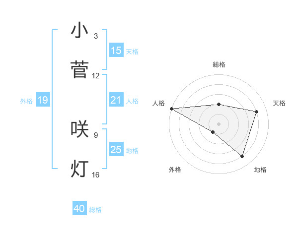 小菅 咲灯さんの地格は25画の4点!