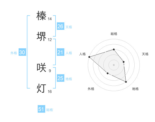 榛堺 咲灯さんの総格は51画の3点!
