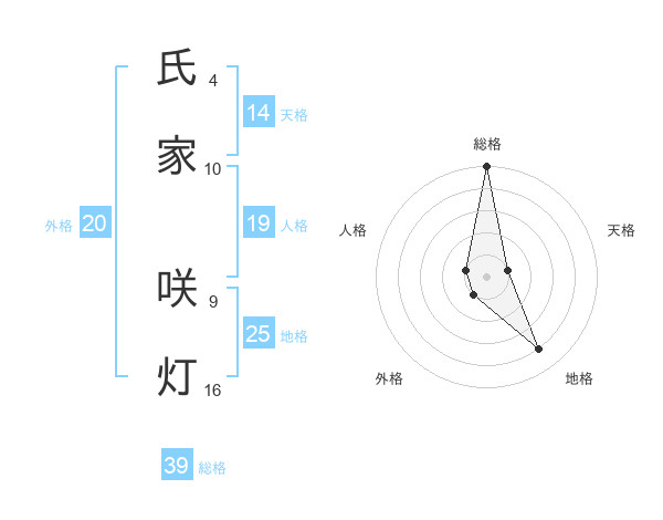 氏家 咲灯さんの総格は39画の5点!