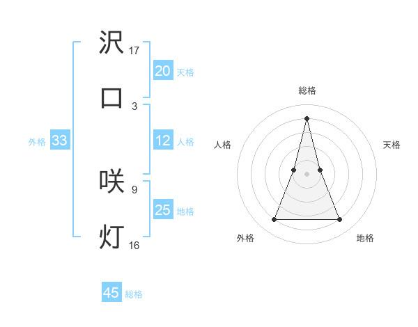 沢口 咲灯さんの総格は45画の4点!