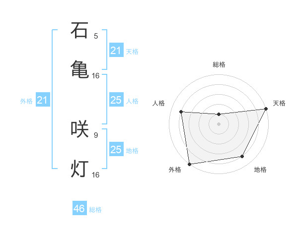 石亀 咲灯さんの天格は21画の5点!