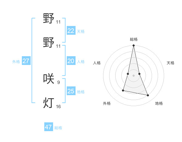 野野 咲灯さんを姓名の画数から五運を鑑定
