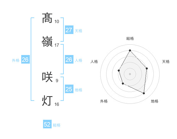 髙嶺 咲灯さんの総格は52画の4点!