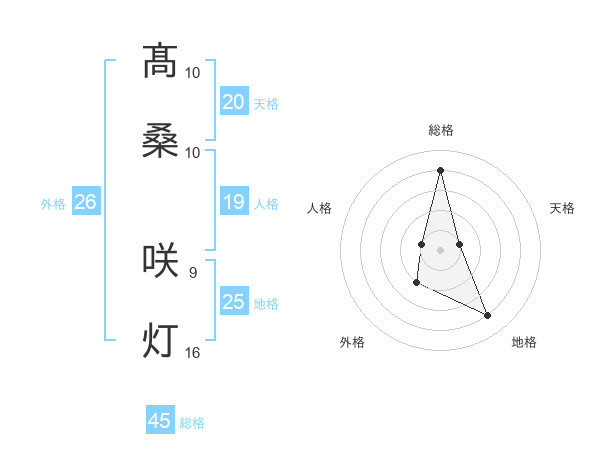 髙桑 咲灯さんを姓名の画数から五運を鑑定