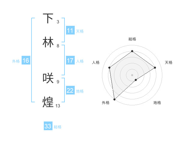 下林 咲煌さんを姓名の画数から五運を鑑定