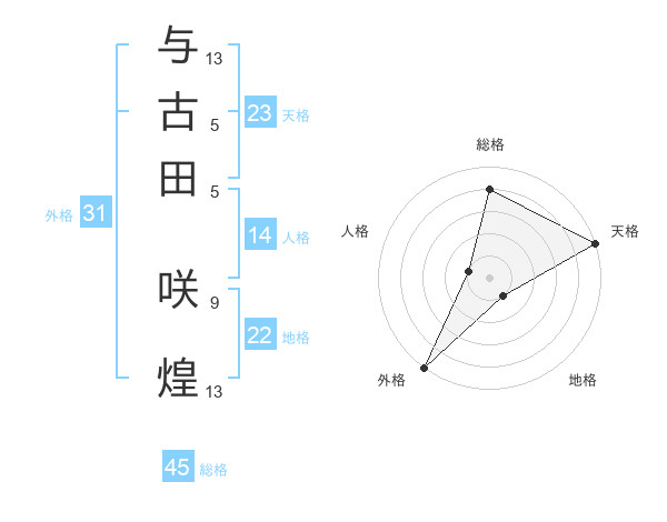 与古田 咲煌さんの天格は23画の5点