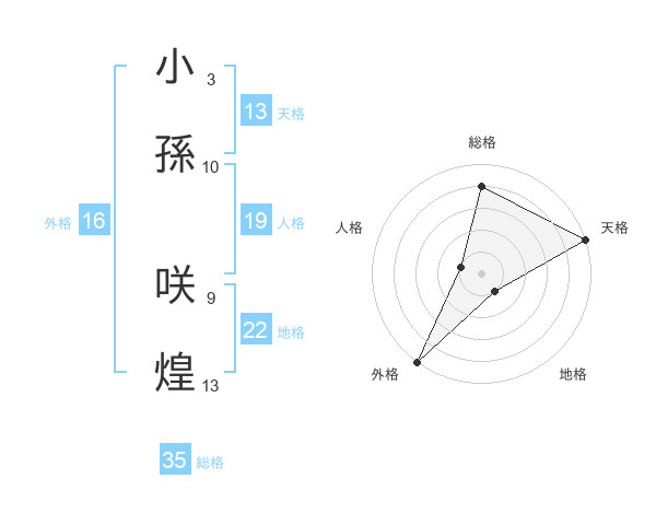 小孫 咲煌さんの総格は35画の4点!