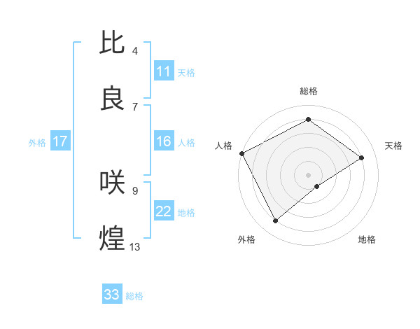 比良 咲煌さんの総格は33画の4点!
