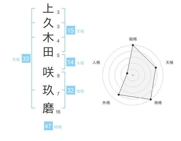 上久木田 咲玖磨さんの総格は47画の5点!