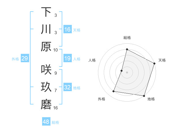 下川原 咲玖磨さんの総格は48画の4点!