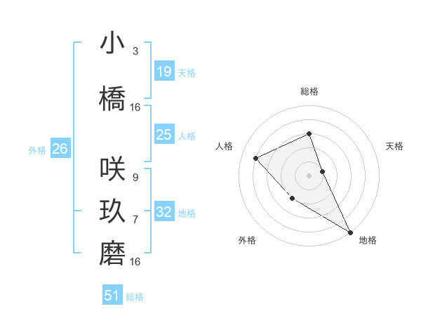 小橋 咲玖磨さんを姓名の画数から五運を鑑定
