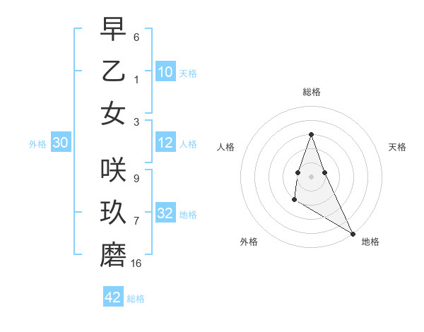早乙女 咲玖磨さんを姓名の画数から五運を鑑定