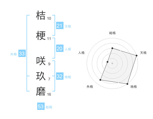 桔梗 咲玖磨さんを姓名の画数から五運を鑑定