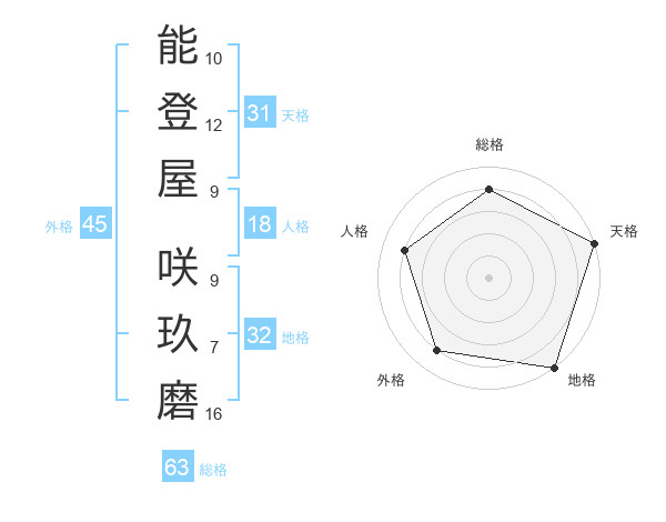 能登屋 咲玖磨さんを姓名の画数から五運を鑑定