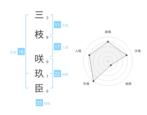 三枝 咲玖臣さんを姓名の画数から五運を鑑定