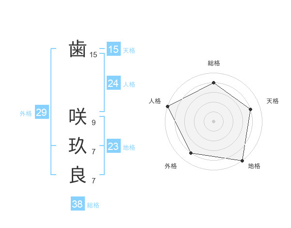 歯 咲玖良さんの総格は38画の4点!